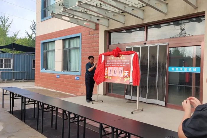 隨后,大會第四項,董事長姜篤華先生上臺講話,為全體茂源人帶來了激勵與期望。講話完畢,姜董進(jìn)行了 “大干 100 天,為茂源公司成立三十周年獻(xiàn)禮” 倒計時揭牌儀式,將大會推向高潮。