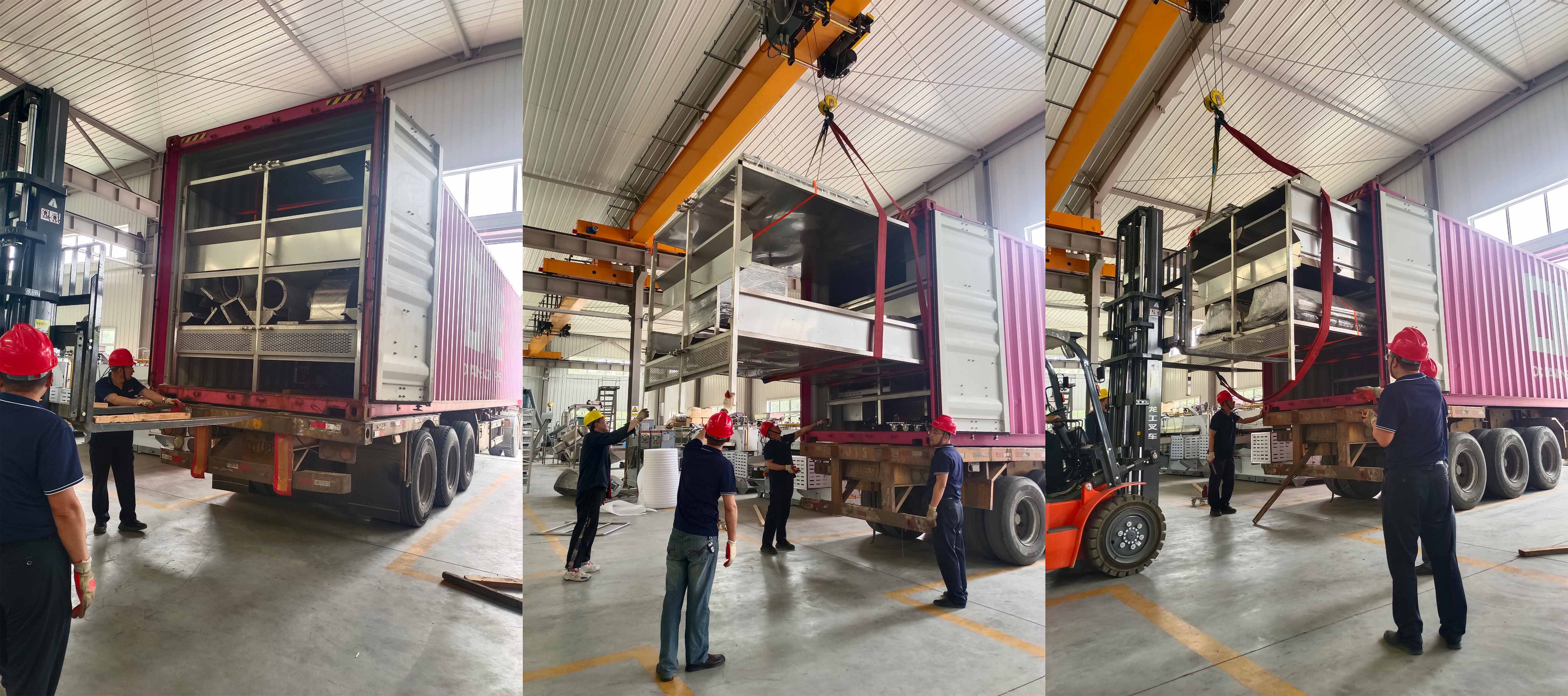 國(guó)外客戶的多功能連續(xù)烤爐發(fā)貨了!本次發(fā)貨共4 個(gè)集裝箱,發(fā)貨工作正緊張而忙碌地進(jìn)行著?,F(xiàn)場(chǎng)一片熱火朝天的景象,每一個(gè)環(huán)節(jié)都在有條不紊地推進(jìn)。