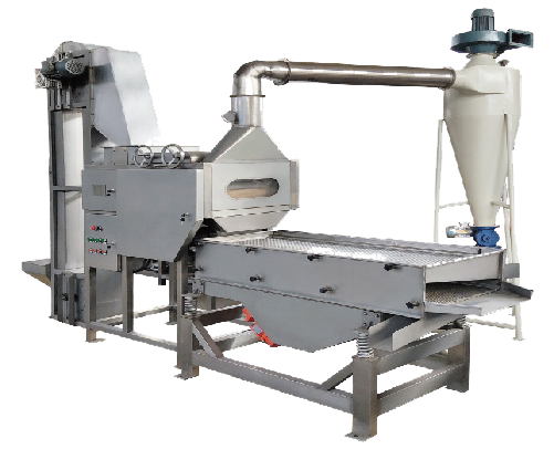 將經(jīng)烘烤/干燥過的花生米,進行脫皮、分選的設(shè)備。主要應(yīng)用于花生醬、花生糖、花生奶/露、花生碎等產(chǎn)品的前期處理。