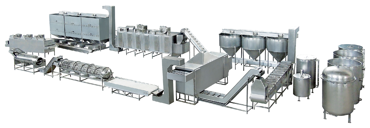 該生產(chǎn)線結(jié)合多種堅(jiān)果加工工藝,一條生產(chǎn)線可加工多種堅(jiān)果。可實(shí)現(xiàn)對(duì)開心果、夏威夷果、碧根果、巴旦木、紙皮核桃、鹵味花生果等多種堅(jiān)果的深加工。