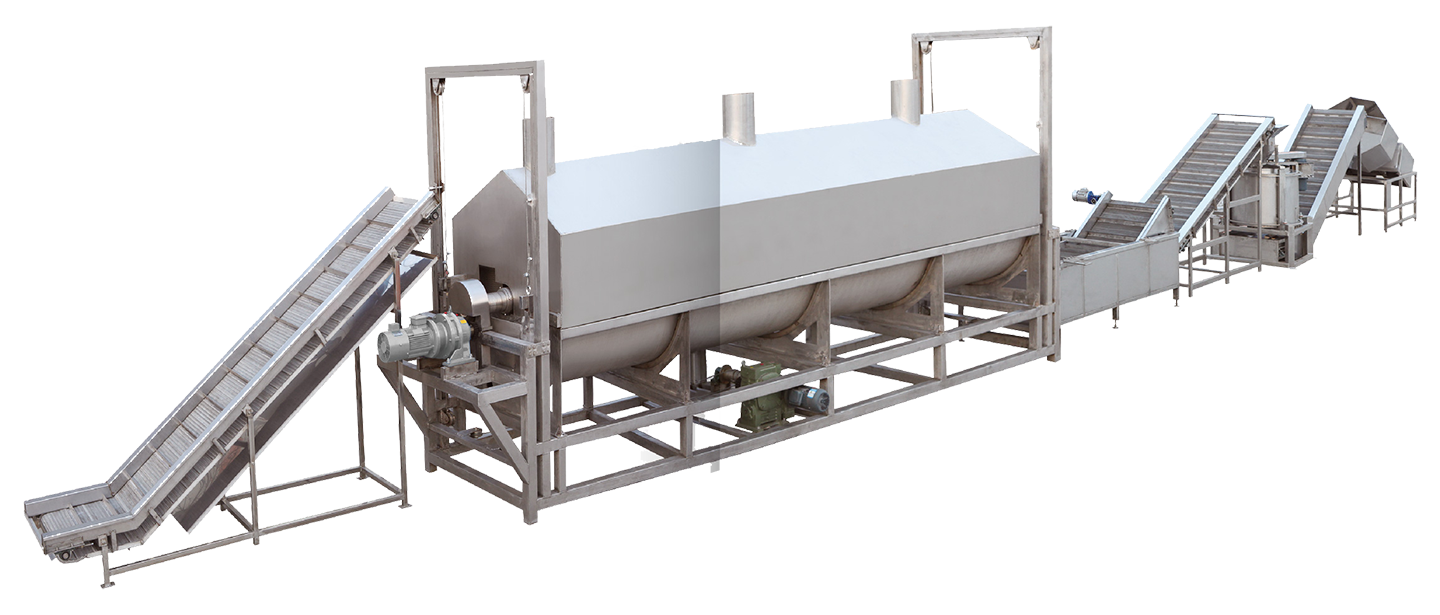 該生產線主要用于豆類食品的油炸加工(如:蠶豆、黃豆、青豆、腰果、鷹嘴豆等) ;集中式自動控制系統(tǒng),操作簡易;充分結合油炸類各種工藝特性,具有用油量少,炸油使用周期長,清理方便,油炸后產品質地均勻色澤如一等特點。