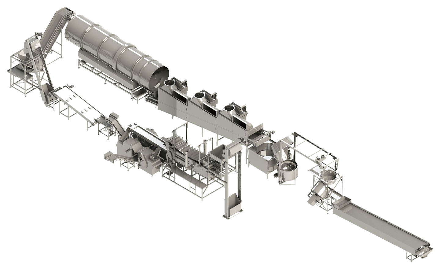 該生產(chǎn)線主要用于油炸花生米,麻辣花生、淮鹽花生等的油炸加工。生產(chǎn)線自動(dòng)化程度高,貼合傳統(tǒng)生產(chǎn)工藝,易清洗;產(chǎn)品色澤光亮、整仁率高、口感酥脆。